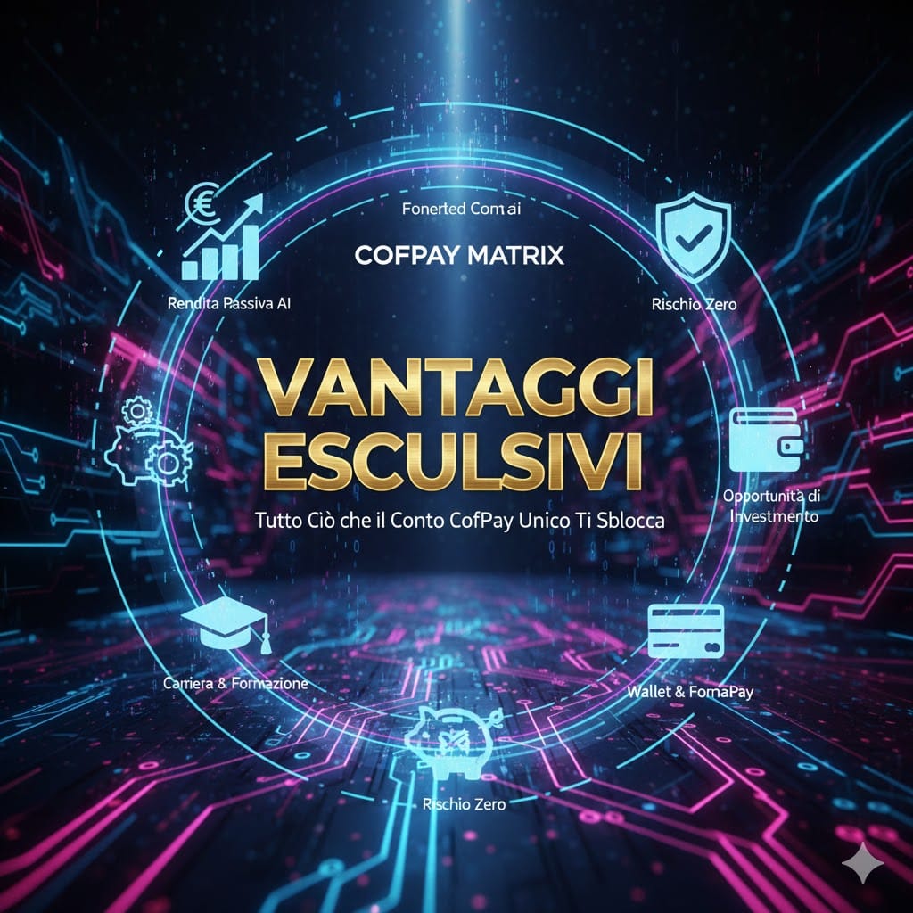 L'attivazione del tuo Conto CofPay ti dà accesso a un ecosistema di opportunità finanziarie, di investimento e di carriera, tutte protette dal meccanismo a Costo Zero Netto.